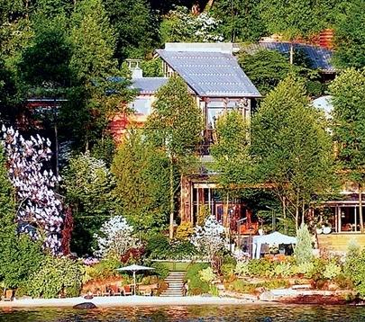 美国,世界首富、微软公司董事长比尔·盖茨先生有幸在他的私邸做东请客。他那价值连城的毫宅,立刻抓住了全球媒体好奇的目光。 “凤凰,非梧桐不栖。”比尔这样举足轻重的大人物,自然住得极其讲究。更何况,他是干软件出身,家里还不率先武装最先进的技术设备吗?他的宅第坐落在西雅图,外界称它是“未来生活预言”的科技豪宅,换句话说,他家就指引着数字生活的航向——果然厉害。(下图:比尔·盖茨先生依山傍水的“第一豪宅”)