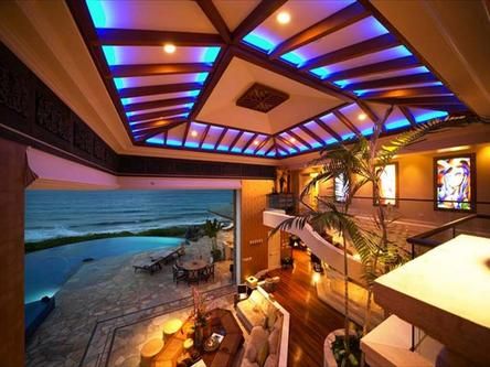 庭院顺山取势,周围种满了茂密的林木,据说有五英亩一大片,也是从森林深处移植来的,桤树、枫树,还有道格拉斯冷杉,甚至人工湖的沙子也从南美洲千里迢迢地运过来……比尔先生好福气,闹中取静,林荫月影,大自然温和地调养他诗意的情怀。 还是领教一下这座豪宅“聪明”手段吧。首先是“远距离遥控”,用手机控制电脑,提前放满一池热水。主人爱清凉,湖面上的游艇就成了他会客的好去处。比尔心细,愿意客人在宅子里洗尽风尘,于是,手机拨号,接通豪宅内的中央电脑,用数字按键与电脑沟通,让电脑对卫浴系统发号施令:“开始在大浴缸放满一池热水吧!”澡水算什么?还能遥控家里所有的电器,比如打开空调、烧煮咖啡等等,手指一触按键,齐了。 游艇就停泊在豪宅前的小码头上,步入家门之前,最好先别上主人事先备好的“电子胸针”,这个小玩意儿不但能辨认客人,还把每位来宾的详细资料藏在胸针里,这样一来,机器之间信息往还,比尔的住宅便成了神机妙算的诸葛亮,它什么都了解,谁也休想跟房子耍滑头。如果没有这枚“胸针”就麻烦了,防卫系统会把陌生的访客当做“小偷”或者“入侵者”,警报一响,便有人倒霉。(下图:比尔·盖茨先生家奢华的“内装修”)