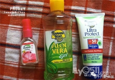 这个Banana Boat晒后修复非常非常好!非常推荐![赞]因为即使凃了防晒每天还是会晒的很痛或者很痒,凃了晒后修复症状立马缓解。那个驱蚊水20多B,而且防蚊效果100%。从左至右:蚊子水(超好用,很好闻不刺鼻)、晒后修复(这就是我推荐的banana boat,晒后一定要,否则皮肤不容易恢复)、防晒霜(当地司机都用这个哦,防晒效果非常好!)