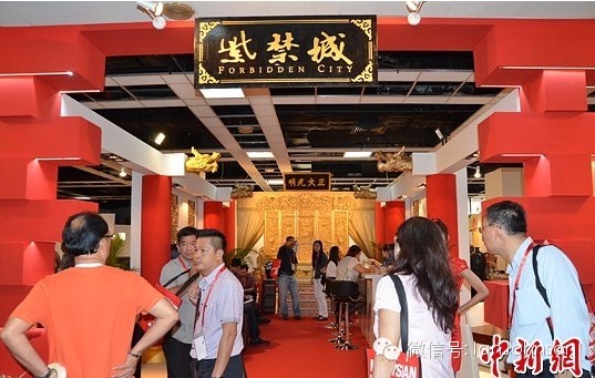 马来西亚来思达家具公司的展区以“紫禁城”命名,展区大面积以大红和金黄色等具中国风格元素来布展,其产品龙床、龙椅、龙图屏风等吸引众多嘉宾和买家关注。该公司一位副经理告诉记者,这些产品参加过在中国上海举办的“世博会”和2011年北京故宫的展示会,深受海外华人的青睐。