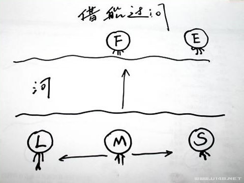 我10多年前认识个朋友,从国外读书回来,给我说了个心理测验《借船过河》,她说是读心理学时老师教的。然后 我拿这个测验测过无数人,都很准。这个也不是算命,但可以让你了解自己的需要,有的人死不承认自己是这样的啊,可实际上就是这样子的。我把这个图画下来 了,大家可以对照看,不过要听我先讲故事,然后再开始。