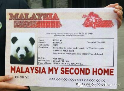旅居大马的熊猫“凤仪”和“福娃”被赠予“马来西亚我的第二家园证书”,间接成为有关计划的代言人。