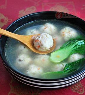 3. 锅中清水煮开,转小火,下入豆渣丸子,煮至丸子浮起,然后放入洗净的油菜,调入适量胡椒粉、鸡精、香油和盐即可。