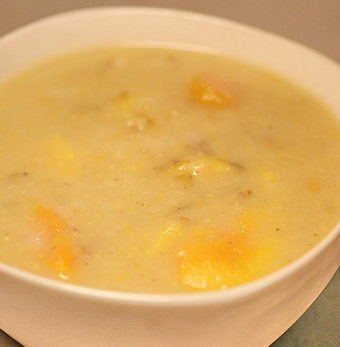 1. 将小米洗净略泡一小时沥干水,拌入豆渣和擦成丝的胡萝卜。