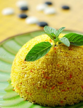 2. 将拌好的材料倒入蒸屉蒸半个小时,炒锅倒入油放入葱花爆香后倒入蒸后的小米进行翻炒,加入盐和鸡精调味后即可。