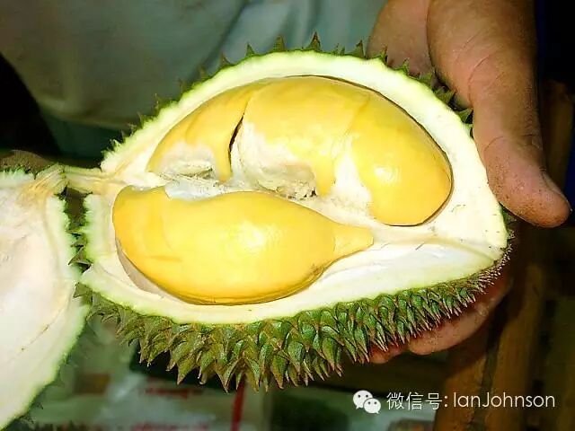 马来西亚热带水果多得很,最出名就是榴莲。到马来西亚,不能不尝榴莲,因此有人说,到了马来西亚不吃榴莲,等于没有来过马来西亚。我吃过泰国和斯里兰卡的榴莲,感觉马来西亚的榴莲味道要更甜美醇厚些。马来西亚的榴莲品种很多,如猫山王、竹脚、尖督及红虾等20多个品种。猫山王被公认为最好的品种。每年榴莲的丰收期,处处榴莲飘香,高速公路的休息处,城市的小巷里,都有卖榴莲的摊档,价格便宜得惊人,有时候10块马币(约20人民币)可买3个。很多游客都在这些摊上,手抓粘糊糊的榴莲肉,吃的不亦乐乎。当然,在高档酒店里,也能很优雅地吃上像冰激凌一样的榴莲甜点,让人回味无穷。还可以到榴莲园里边赏美景边吃榴莲。