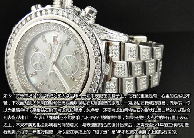 用钻石表解码身价的男人 发表于22/07/2014 作者 Nick Albert 熊猫老师 你觉得钻石手表代表什么:低俗?暴富?品味差?Baby那是因为你不了解也未曾拥有过好吗?20克拉钻石戴在你老婆手上叫“鸽子蛋”,100克拉的钻石戴在手腕子上那叫“工艺”!钻石戒指好做,你以为做手表就容易吗? 评分:分享给朋友吧!朋友会谢谢你! 点击分享到 Facebook (在新窗口中打开) Facebook 点击以分享到 X(在新窗口中打开) X 点击分享到 LinkedIn(在新窗口中打开) LinkedIn 点击分享到WhatsApp(在新窗口中打开) WhatsApp 点击分享到Tumblr(在新窗口中打开) Tumblr 更多 点击以打印(在新窗口中打开) 打印 相关