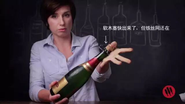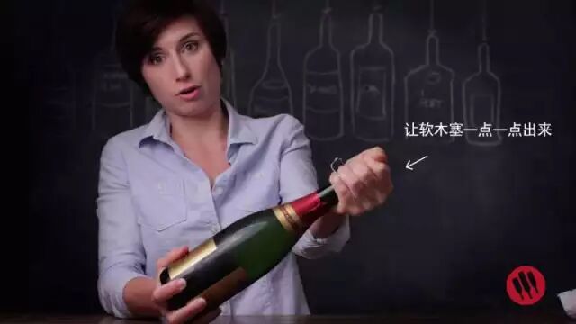 这个时候你已经能够感觉到瓶中的压力在推动软木塞,所以你也要加点力按住瓶塞,让瓶中气体慢慢溢出,随着轻轻的滋滋声软木塞就会弹出瓶口。