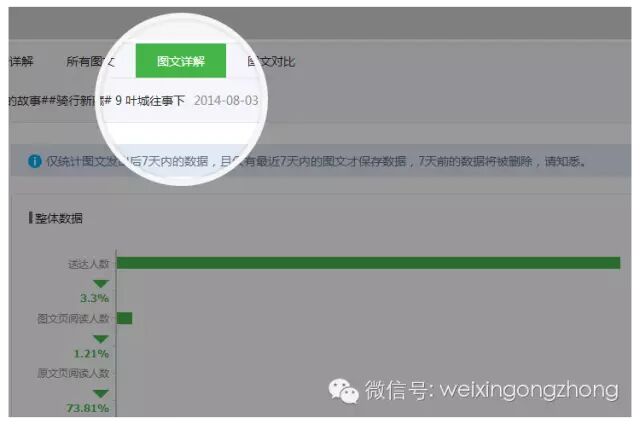 3.图文群发页增加图文详解功能,可查看图文消息的详细属性,和读者的属性数据