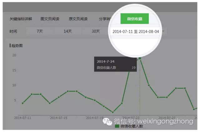 5.图文群发页和图文统计页增加微信收藏统计,可查看每篇图文的收藏次数,或所有图文的每日总收藏次数