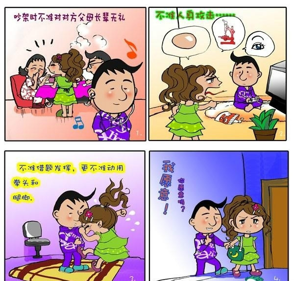 4、无论吵架多严重,都不许提离婚,有错一方要主动道歉,无错一方在有错方道歉并补偿后要尽快原谅对方。