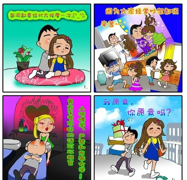 9、每周都要给对方按摩一次,因为大家经常吵架都很辛苦,男方手艺不好的话可以跟盲人师傅学,严禁向发廊女学!