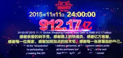 11月12日凌晨阿里巴巴公布了“双十一”全天的交易数据:天猫双十一全天成交金额为912.17亿元,其中在移动端交易额占比68%,232个国家参与进来,物流订单量4.67亿。