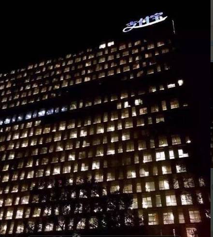 支付宝大楼,也是灯火通明
