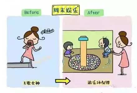 有娃前周末是去K歌、旅游,是个十足的当代时尚女神,有娃后,经常去的就是儿童乐园和商场的婴童专柜。