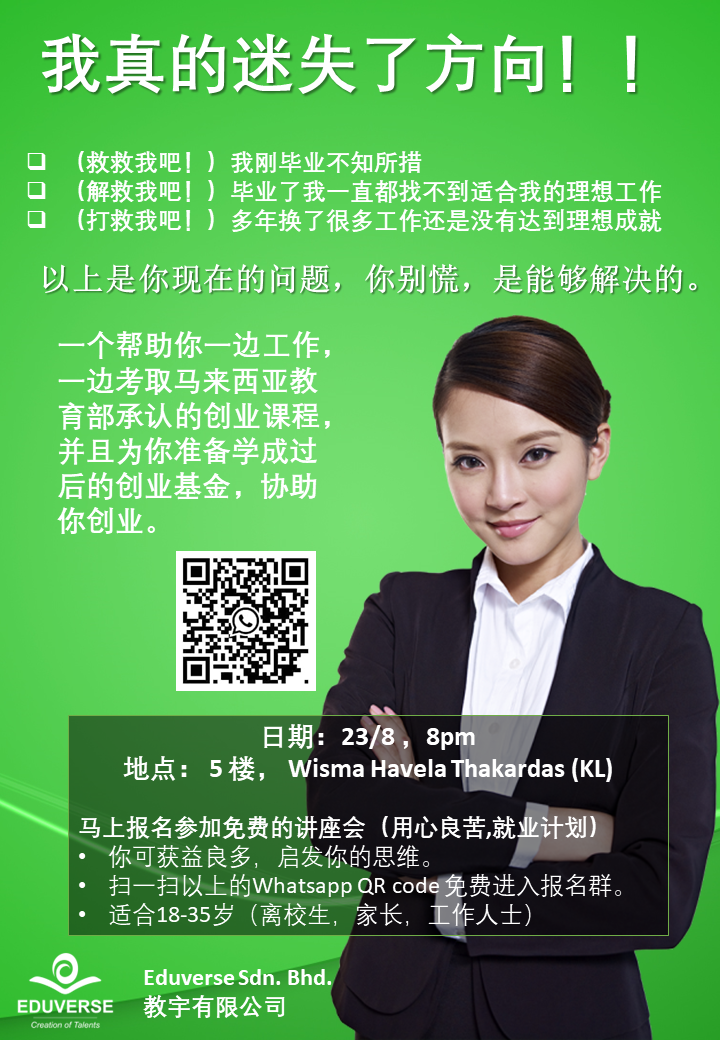 一个帮助你一边工作,一边考取马来西亚教育部承认的创业课程,并且为你准备学成过后的创业基金,协助你创业。