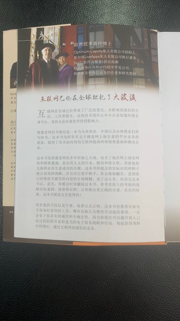 在此我想衷心感谢副教授李嘉玲博士为我的书籍《由草根变互联网大咖》在2016年所作的序言。她的肯定和鼓励对我而言意义重大,为我在创作和写作道路上增添了信心和动力。